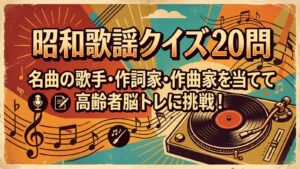 詳細解説:各問題に出身・デビュー年・代表作・伝説エピソードを解説。昭和のスターたちの足跡がよみがえります。